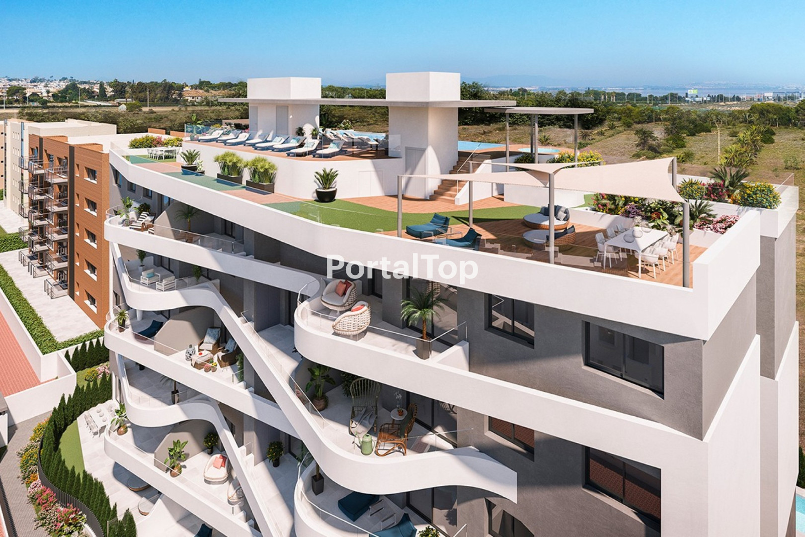Costa Blanca Eiendom presenta este fantástico complejo residencial de obra nueva en la privilegiada zona de Punta Prima. La urbanización contará con un total de 36 apartamentos de 2 y 3 dormitorios, cada uno con 2 baños. Este residencial destaca por sus extraordinarias vistas al mar desde la mayoría de las viviendas. Las amplias terrazas y jardines privados, especialmente en las plantas bajas, ofrecen la opción de construir su propia piscina privada, creando un oasis personalizado. El complejo se distingue por su orientación privilegiada, con opciones de apartamentos orientados hacia el noreste o el suroeste, lo que garantiza una excelente entrada de luz natural y vistas panorámicas deslumbrantes. Además, las zonas comunes en el solárium permiten disfrutar de vistas de 360º, el lugar perfecto para contemplar el amanecer o el atardecer. Las instalaciones comunes están diseñadas para elevar su estilo de vida. Incluyen una piscina infinity con tres camas de agua, jacuzzi y una zona chill out, todo pensado para maximizar su bienestar y relajación. La ubicación es otro punto fuerte de este proyecto. A tan solo 300 metros de la pintoresca playa Cala Piteras y a 700 metros de la playa de Punta Prima, podrá disfrutar de la belleza del mar Mediterráneo. Con la playa Flamenca a solo 3 minutos en coche, las opciones para disfrutar del mar están al alcance de su mano. Además, la proximidad a una amplia oferta de servicios, como restaurantes, farmacias y supermercados, garantiza la comodidad diaria. Para compras y entretenimiento, los centros comerciales Zenia Boulevard y Habaneras están a solo 5 minutos en coche. La estratégica ubicación del residencial ofrece conexiones excelentes con los aeropuertos de Alicante y Murcia, ambos a menos de 45 minutos en coche. Los entusiastas del golf podrán disfrutar de varios campos de renombre, como Villamartín Golf, Campoamor Golf y Las Colinas Golf, a poca distancia. Memoria de calidades: Â Solados continuos entre el salón y la terraza. Â Climatización por conductos (frío/calor) en todas las viviendas. Â Encimera de cuarzo Silestone o similar en la cocina con fregadero bajo encimera. Â Mueble de lavabo y espejo retroiluminado en el baño principal. Â Suelo radiante eléctrico en los baños. Â Inodoros con cisterna empotrada en ambos baños. Â Iluminación LED bajo los muebles altos de cocina. Â ACS mediante aerotermo, con apoyo eléctrico para ahorro de energía. Â Jardines privados con césped artificial en plantas bajas. Â Toldo incluido en las viviendas de planta baja. Póngase en contacto con nosotros para obtener más información, o únase a una de nuestras visitas sin compromiso para visitar este maravilloso proyecto.