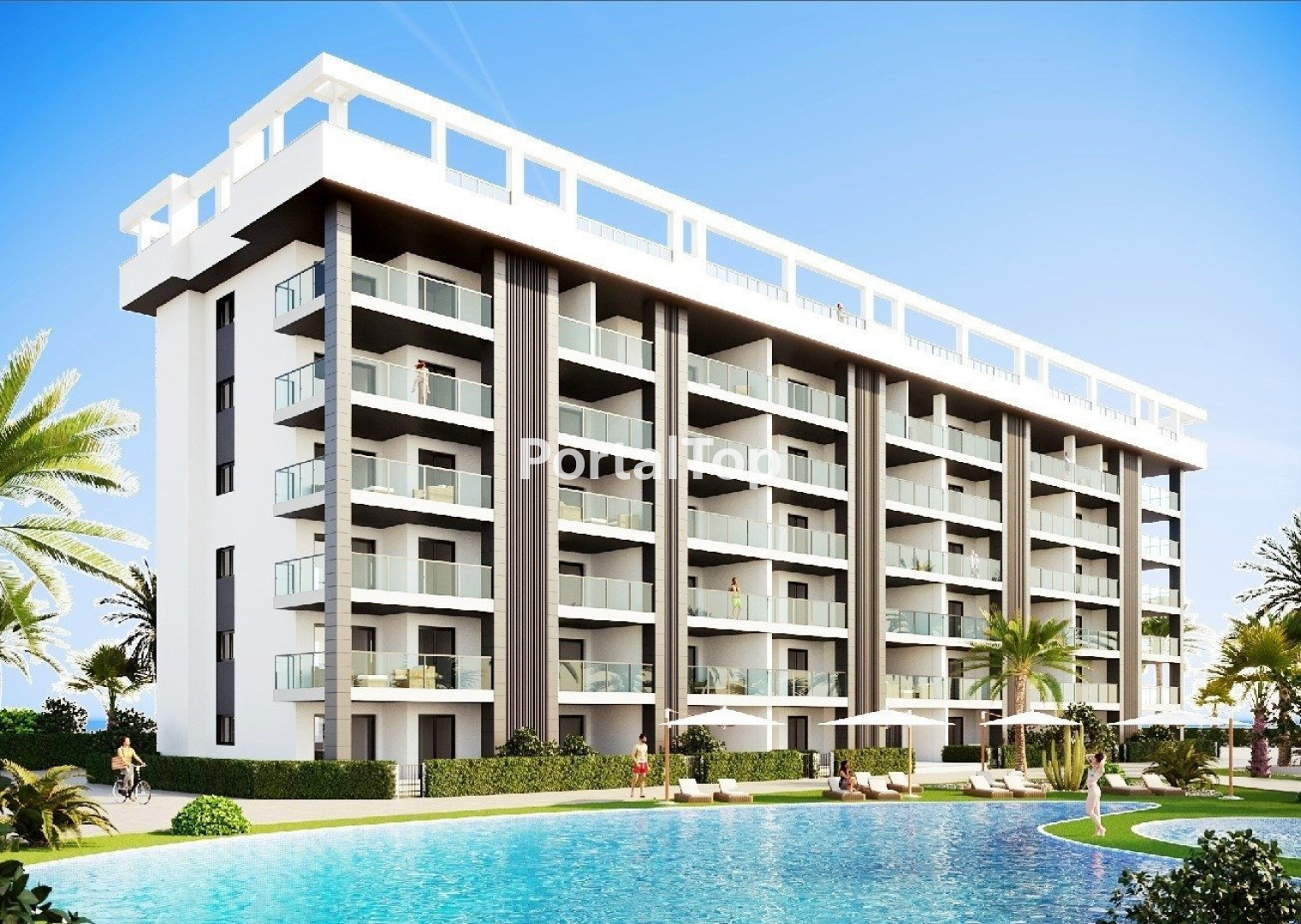 URBANIZACION CERRADA DE OBRA NUEVA EN TORREVIEJA A SOLO 700M DE LA PLAYA Complejo residencial de nueva construcción de 362 apartamentos con amplias zonas comunitarias en Torrevieja. Puede elegir entre lujosos apartamentos de 2 dormitorios y 2 baños, áticos de 3 dormitorios y 2 baños con solarium privado y apartamentos de 2 dormitorios y 2 baños en planta baja con jardín privado. -Diseños modernos y acabados y materiales de calidad -Casi todos los apartamentos tienen vistas al mar -Todos los apartamentos cuentan con amplias terrazas frontales orientadas a las zonas comunitarias -Zonas comunitarias con dos piscinas para adultos, piscina para niños, zona infantil, gimnasio, zona deportiva y spa, aparcamiento de bicicletas y zona de aparcamiento de vehículos -700 metros hasta la playa de La Mata, 10 minutos andando -Enfrente del Centro Comercial Torremarina con Mercadona, restaurantes, cafeterías y otras tiendas Torrevieja es una ciudad española de la provincia de Alicante, en la Costa Blanca. Es conocida por su clima y su costa típicamente mediterráneos. Cuenta con paseos marítimos con complejos turísticos a lo largo de sus playas de arena. El pequeño Museo del Mar y la Sal alberga exposiciones sobre la historia pesquera y salinera de la ciudad. En el interior, el Parque Natural de las Lagunas de La Mata-Torrevieja cuenta con senderos y dos lagunas saladas, una rosa y otra verde. El aeropuerto de Alicante se encuentra a 40 minutos y el de Murcia a una hora.