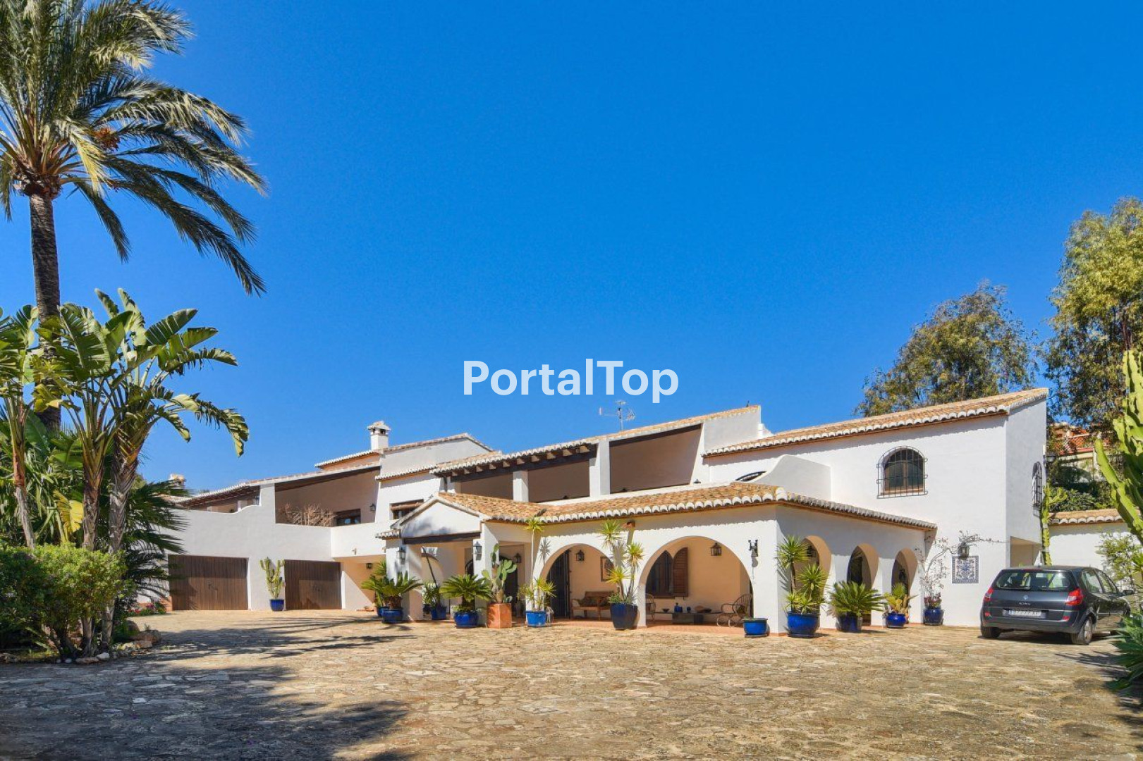 - A truly superb first quality Spanish hacienda built on a large scale (570m2) and offering privacy (6.800 m2 of pinewoods) while being situated only 1km from the sea (Bassetes harbour). This exceptional property offers a parking area for 5-6 cars, a double garage and a combination of beautiful terraces, living areas and bedrooms (5) each with an en-suite bathroom. Carefully selected combinations of traditional Spanish tiling and clay and porcelain floor tiling and antique beams throughout make a beautiful Mediterranean home. The house incorporates a modern kitchen following the style and a lovely private barbeque patio. The beautiful terraces can easily acommodate 12 seated guests, including a swimming pool terrace and solarium. The salon offers a comfortable sitting area around a large wood burning chimney and a separate attractive dining area. Laundry room, gym area, central heating, hot/cold air conditioning. A unique Spanish home. Villa 570m2, plot 6.800m2.[IW]
