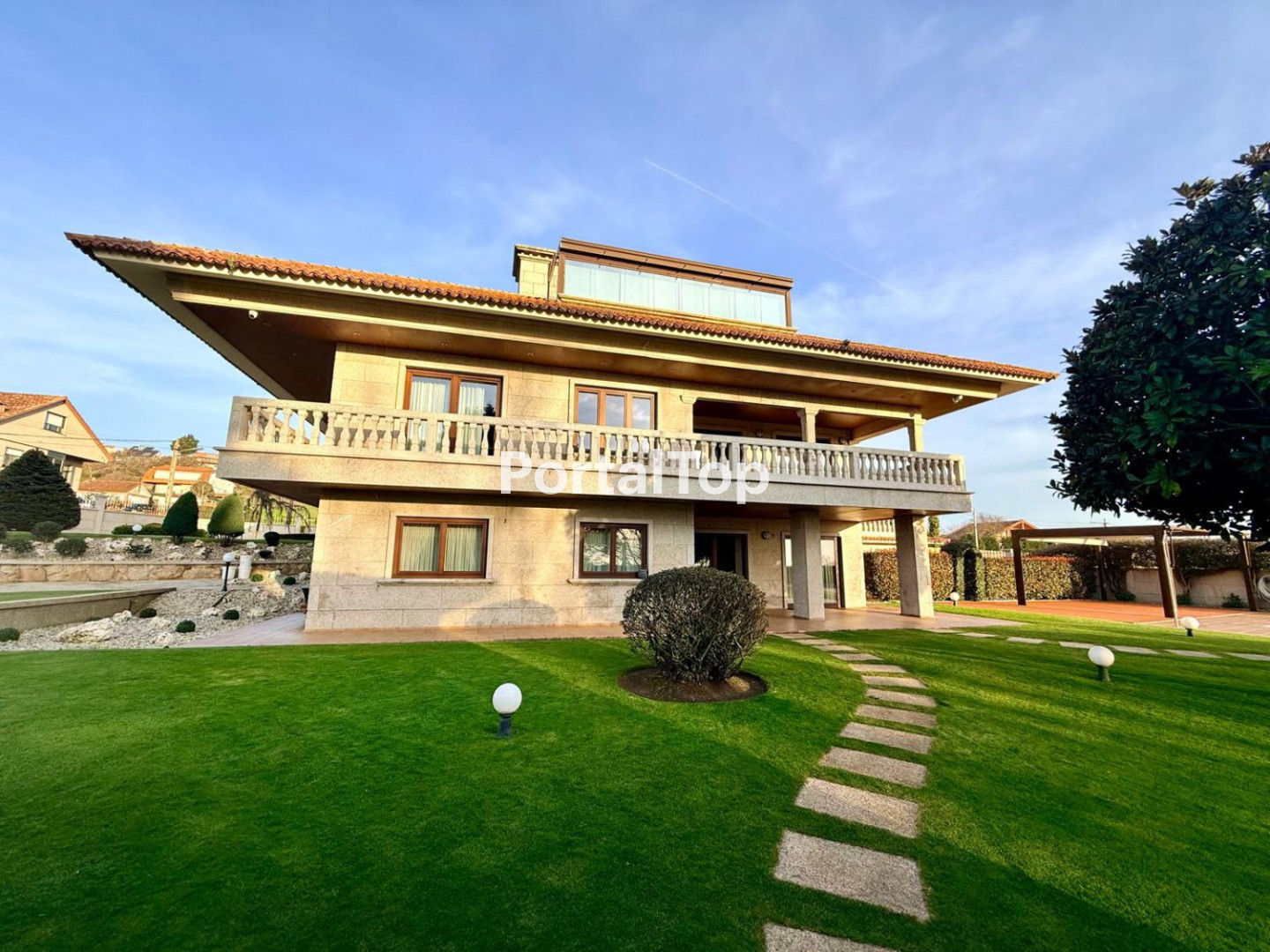 Ref-0002281.- Exclusiva propiedad en la zona de Abetos, Nigrán, con privilegiadas vistas al mar y un entorno de absoluta tranquilidad. Ubicada sobre una parcela llana y soleada de 3.100 m2, esta vivienda de 720 m2 construidos destaca por su sólida construcción, amplitud de espacios y cuidada distribución, ofreciendo el equilibrio perfecto entre elegancia, confort y privacidad. La residencia se articula en varios niveles perfectamente diferenciados. La planta principal alberga un amplio salón con chimenea y techos con vigas vistas, conectado directamente con el jardín, además de una espaciosa cocina independiente totalmente equipada, un dormitorio en suite y un baño adicional. En la planta superior se encuentran tres dormitorios con terraza, incluyendo la suite principal, junto a otro salón y dos baños completos. La planta bajo cubierta se ha concebido como una exclusiva suite privada con salón, despacho, vestidor, baño y una magnífica terraza cubierta con vistas abiertas al mar. El sótano incorpora bodega con cocina, lavandería, dormitorio de servicio y baño, aportando funcionalidad adicional. En el exterior, la piscina, la zona de barbacoa con comedor al aire libre y la pérgola orientada al mar convierten esta propiedad en un espacio ideal tanto para el disfrute familiar como para el ocio y la vida social. Equipada con carpintería exterior en madera noble, calefacción central y sistema de aspiración centralizada, se vende totalmente amueblada y lista para entrar a vivir. Una oportunidad única para adquirir una vivienda representativa en una de las zonas más demandadas de Nigrán.