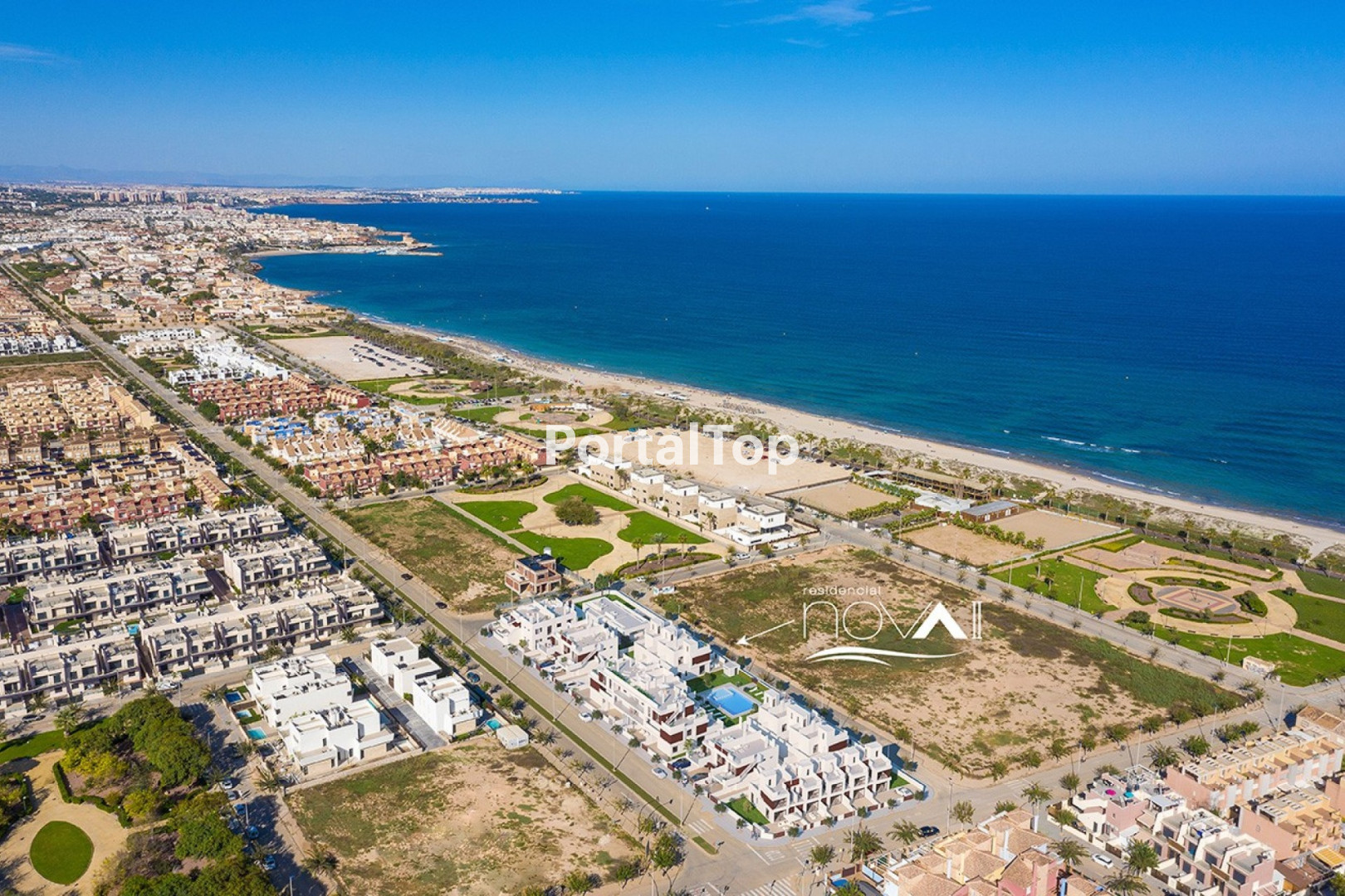 Costa Blanca Eiendom presenta este exclusivo proyecto, que combina una ubicación envidiable cerca de la playa con todas las comodidades que pueda desear en Pilar De La Horadada. Este exclusivo proyecto de obra nueva ofrece una amplia gama de propiedades que incluyen apartamentos en planta baja, entrepisos, áticos y propiedades adosadas, adaptándose a las necesidades de todos los compradores. Las viviendas están disponibles en configuraciones de 2 o 3 dormitorios y 2 baños, todas diseñadas con un enfoque en el confort y la elegancia. Cada casa cuenta con baños completamente acabados con calefacción por suelo radiante, una cocina moderna equipada con todos los electrodomésticos necesarios, persianas eléctricas y armarios empotrados. Estos detalles aseguran que cada hogar esté listo para mudarse y disfrutar desde el primer día. El diseño ultramoderno y los materiales de construcción de primera clase son características distintivas de este proyecto, concebido para satisfacer los estándares más exigentes. Ofrecemos diversas opciones para adaptarse a sus preferencias: viviendas en planta baja con jardín/terraza y Aticos en planta alta que incluyen un gran balcón y un solárium privado, ideal para disfrutar del sol y las vistas. La urbanización se presenta como un oasis privado y seguro, ofreciendo un entorno exclusivo de tranquilidad para sus residentes. Completamente cerrada al exterior, brinda la máxima seguridad para que las familias disfruten de su hogar con total confianza. Entre sus servicios destacados, cuenta con una amplia piscina comunitaria y zonas ajardinadas con tumbonas, perfectas para aprovechar el clima mediterráneo. Este enclave residencial ha sido diseñado para proporcionar una experiencia de vida relajante y serena, convirtiéndose en el lugar ideal para quienes buscan paz y seguridad. La ubicación de este residencial es verdaderamente privilegiada. A solo 200 metros de la impresionante Playa de las Higuericas, tendrás acceso directo a kilómetros de arena dorada y aguas cristalinas. Además, Pilar De La Horadada ofrece una amplia gama de servicios, desde bares y restaurantes hasta tiendas y campos de golf de clase mundial. Póngase en contacto con nosotros para obtener más información, o únase a uno de nuestros tours sin compromiso para visitar este maravilloso proyecto.