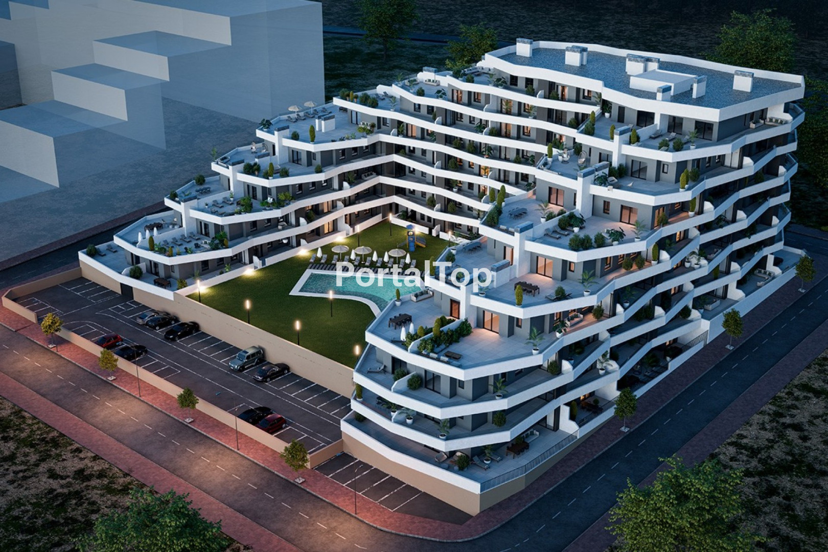 Costa Blanca Eiendom presenta un nuevo proyecto residencial en San Miguel de Salinas, un enclave que combina tranquilidad y proximidad a los principales servicios. Este exclusivo complejo consta de 165 modernos apartamentos distribuidos en 7 plantas, con opciones de 2 o 3 dormitorios y 2 baños. De estas viviendas, 30 son áticos que ofrecen vistas privilegiadas y amplias terrazas. Las viviendas están diseñadas para maximizar la luz natural y la comodidad. Los salones cuentan con grandes ventanales correderos que se abren a soleadas terrazas, desde donde se pueden admirar las vistas a las montañas o al centro de San Miguel de Salinas. Las cocinas abiertas, completamente equipadas con electrodomésticos modernos, forman el corazón de cada vivienda. Los amplios dormitorios principales incluyen armarios empotrados y baño en suite. El complejo está ubicado en una urbanización cerrada que proporciona seguridad y tranquilidad. Los residentes disfrutarán de jardines comunitarios bellamente diseñados, una gran piscina, piscina infantil y una zona de juegos, ideales para el ocio y el relax. Además, cuenta con aparcamiento subterráneo y ascensores que conectan todas las plantas, ofreciendo una experiencia de vida moderna y funcional. Este proyecto destaca por ofrecer opciones para todos los estilos de vida, con viviendas disponibles en planta baja, entrepiso y planta alta. Las viviendas de la planta baja incluyen jardín privado, mientras que las superiores disfrutan de terrazas y áticos con vistas inigualables. La ubicación estratégica del complejo proporciona un entorno tranquilo con vistas a las montañas, pero también acceso cercano a tiendas, bares, restaurantes y otros servicios esenciales. Memoria de calidades: Cimentación y estructura: Zapatas y vigas de hormigón armado. Estructura unidireccional con pilares y vigas planas.Fachada y aislamiento: Doble muro de ladrillo con cámara de aislamiento térmico y acústico. Acabado en mortero monocapa blanco.Carpintería exterior: Ventanas y balconeras de aluminio lacado en gris, con doble acristalamiento y persianas. Barandillas de vidrio de seguridad.Carpintería interior: Puerta de acceso con cerradura de seguridad y puertas de paso lacadas en blanco. Armarios empotrados con altillo.Solados y alicatados: Porcelánico de primera calidad en toda la vivienda. Alicatado de gres en cocina y baños.Instalaciones: Fontanería con materiales homologados, sanitarios de primera calidad, grifería monomando y calentador de aerotermia de 150 litros. Preinstalación de aire acondicionado.Zonas comunes: Piscina principal de 195 m2, piscina infantil, zona de juegos y amplios jardines. Este exclusivo proyecto en San Miguel de Salinas ofrece una oportunidad única para quienes buscan una vivienda moderna, funcional y rodeada de servicios en un entorno privilegiado. Póngase en contacto con nosotros para obtener más información o unirse a uno de nuestros tours sin compromiso para descubrir esta maravillosa residencia.