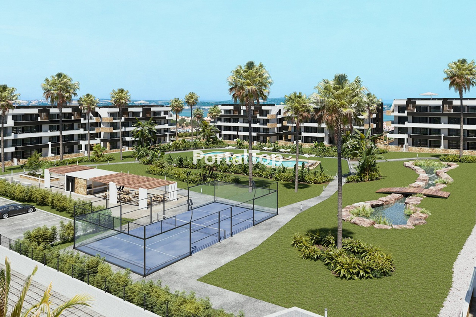 Costa Blanca Eiendom presenta este exclusivo proyecto de alta calidad que combina diseño moderno y lujo, situado en la zona de El Chaparral, Torrevieja, a solo 4 km de las playas de Torrevieja y muy cerca del emblemático Lago Rosa. El residencial se compone de 80 apartamentos distribuidos en 5 bloques, cada uno con planta baja, primera, segunda planta y áticos con solárium privado. Estas viviendas han sido cuidadosamente diseñadas para maximizar la comodidad y la funcionalidad, ofreciendo 2 dormitorios y 2 baños, incluyendo un baño en suite en el dormitorio principal. Las amplias terrazas proporcionan una excelente luminosidad y, en muchas de las viviendas, unas impresionantes vistas al mar. Cada apartamento dispone de una distribución diáfana entre cocina y salón, creando un ambiente moderno, abierto y acogedor. Los dormitorios cuentan con armarios empotrados completamente equipados, lo que aporta elegancia y practicidad. Los áticos destacan por sus amplias terrazas-solárium, perfectas para disfrutar del clima mediterráneo durante todo el año. El residencial ofrece zonas comunes exclusivas que incluyen piscina comunitaria para adultos y niños, amplias áreas ajardinadas con palmeras de hasta 6 metros, zona de barbacoa, parque infantil, pista de pádel, campo de petanca, estanque al aire libre y un área de fitness exterior, diseñados para aportar bienestar y un estilo de vida moderno en un entorno mediterráneo. La ubicación es inmejorable: en El Chaparral, Torrevieja, a tan solo 4 km de las playas y cerca del famoso Lago Rosa de Torrevieja, un entorno natural único. Además, la zona cuenta con todos los servicios esenciales, como supermercados, restaurantes, centros comerciales y opciones de ocio. La región también ofrece una gran variedad de actividades recreativas, como campos de golf y parques naturales, junto a una excelente oferta gastronómica con bares y restaurantes que destacan los platos típicos de la Costa Blanca. Memoria de calidades: Cimentación y estructura en hormigón armado. Ventanas de PVC con doble acristalamiento y persianas motorizadas. Puerta principal de seguridad de alta calidad. Armarios empotrados, completamente equipados y forrados. Baños con sanitarios suspendidos, mamparas de ducha, mueble de lavabo y espejo. Cocina equipada con muebles altos y bajos, encimera de Silestone y preinstalación para lavavajillas. Preinstalación de aire acondicionado por conductos. Piscinas comunitarias con zona de baño para niños. Zonas comunes con jardines, zona barbacoa, parque infantil, pista de pádel, campo de petanca, estanque al aire libre y área de fitness exterior. Aparcamiento subterráneo con puerta de acceso motorizada. Póngase en contacto con nosotros para obtener más información, o únase a una de nuestras visitas sin compromiso para descubrir este maravilloso proyecto.