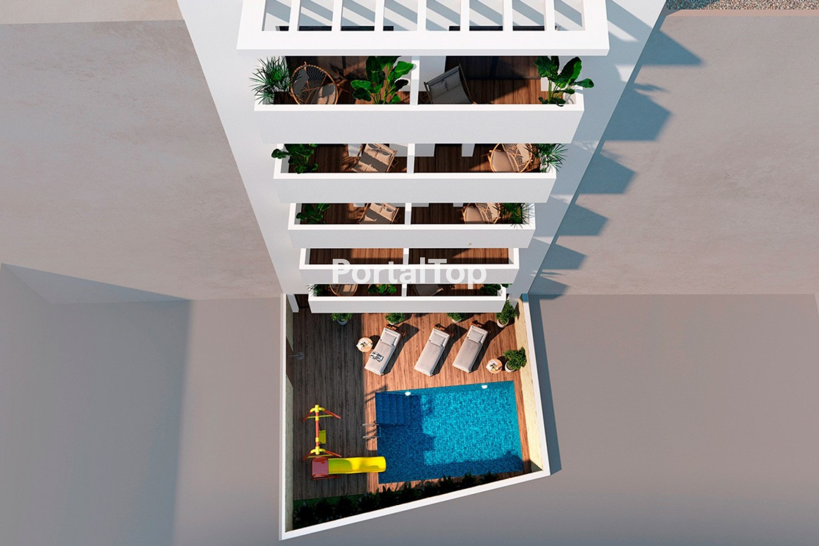 Costa Blanca Eiendom presenta un exclusivo complejo residencial de 12 modernos apartamentos situado en pleno centro de Torrevieja, a tan solo 200 metros de la Playa del Cura. El edificio, distribuido en 6 alturas, ofrece viviendas tipo estudio, de 1 y 2 dormitorios, combinando un diseño arquitectónico contemporáneo con la máxima funcionalidad y una ubicación privilegiada que permite disfrutar del mar, el ocio y todos los servicios sin renunciar a la tranquilidad. Las zonas comunes del residencial, con más de 130 m2, han sido diseñadas para proporcionar bienestar y confort. Incluyen un gimnasio totalmente equipado, sauna, piscina comunitaria con área infantil, así como un elegante solárium en la azotea con zonas chill-out y vegetación, creando un ambiente relajante y exclusivo con vistas privilegiadas. En los interiores, las viviendas destacan por sus acabados de alta calidad: Cimentación y estructura en hormigón armado de gran resistencia, con forjados unidireccionales. Fachada de ladrillo cerámico con aislamiento térmico de 10 cm y revestimientos hidrófugos. Tabiquería interior en ladrillo cerámico hueco, apto para revestimientos en yeso o porcelánico. Carpintería exterior en PVC color gris antracita con doble acristalamiento Guardian Sun y persianas motorizadas. Puerta de entrada acorazada con cerradura de seguridad; puertas interiores lacadas en blanco con herrajes en negro mate. Armarios empotrados a medida, vestidos con cajoneras, baldas y barras de colgar. Suelos y revestimientos porcelánicos de alta gama (hasta 30 /m2), colocados con adhesivo flexible. Baños totalmente equipados con sanitarios suspendidos ROCA o similar, grifería TRES, platos de ducha de resina, mamparas de vidrio e inodoros con cisterna oculta. Cocinas amuebladas con módulos de alta calidad, frentes lacados y encimera Silestone. Climatización mediante preinstalación de aire acondicionado centralizado por conductos con sistema Air Zone. Agua caliente sanitaria mediante aerotermia de alta eficiencia energética. Iluminación LED empotrada de bajo consumo en todas las estancias y terrazas. Instalaciones eléctricas de grado elevado, con red de datos y tomas de TV en todas las estancias. Detalles adicionales como videoportero digital, aislamiento acústico en bajantes, pintura plástica mate en interiores y paños decorativos con papel pintado en dormitorios. El entorno residencial se completa con un ascensor para 8 personas y accesos cómodos a todas las viviendas, garantizando funcionalidad y confort. Torrevieja, en plena Costa Blanca, ofrece un estilo de vida vibrante y mediterráneo. Sus playas de arena fina, el animado paseo marítimo, las Salinas de Torrevieja y su amplia oferta de ocio convierten a la ciudad en un enclave ideal tanto para residencia habitual como para segunda vivienda junto al mar. Póngase en contacto con nosotros para obtener más información, o únase a uno de nuestros tours sin compromiso para visitar este maravilloso proyecto.