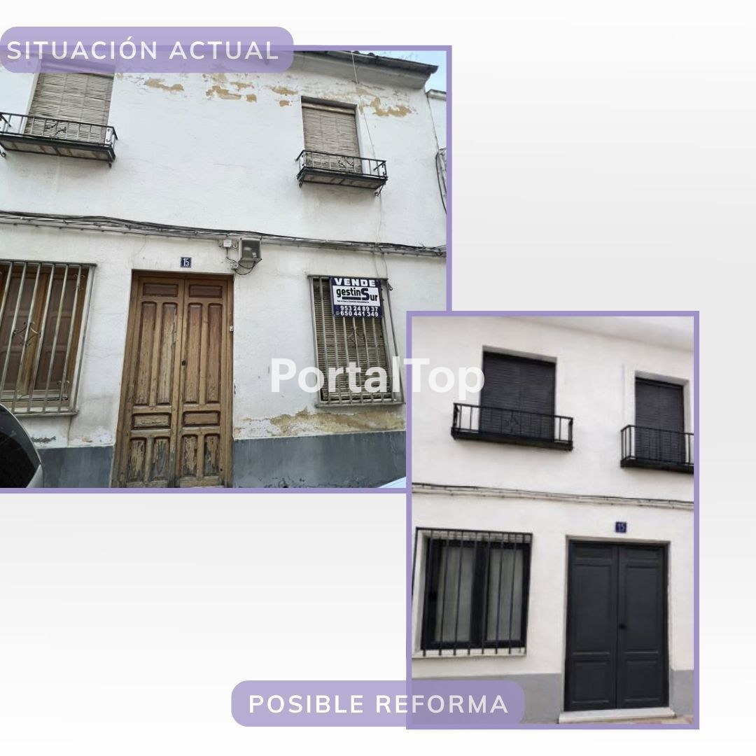 Casa céntrica con cochera en Torredonjimeno. Se vende acogedora vivienda situada en pleno centro de Torredonjimeno, en una ubicación privilegiada, a pocos pasos de comercios, bares, el teatro municipal y la plaza principal del municipio. La vivienda cuenta con 96 m2 construidos distribuidos en tres plantas, ofreciendo espacios cómodos y funcionales. Dispone de 4 dormitorios, 2 baños, salón, cocina, patio interior, terraza y cámara, ideal como zona de almacenamiento o posible espacio adicional. Además, la propiedad incluye una cochera anexa de 39 m2, con espacio suficiente para coche y zona de trastero, lo que aporta un gran valor añadido en una zona céntrica. Una excelente oportunidad tanto como vivienda familiar como para inversión, gracias a su buena ubicación y distribución. Ideal para aquellos que buscan personalizar su hogar a su gusto.