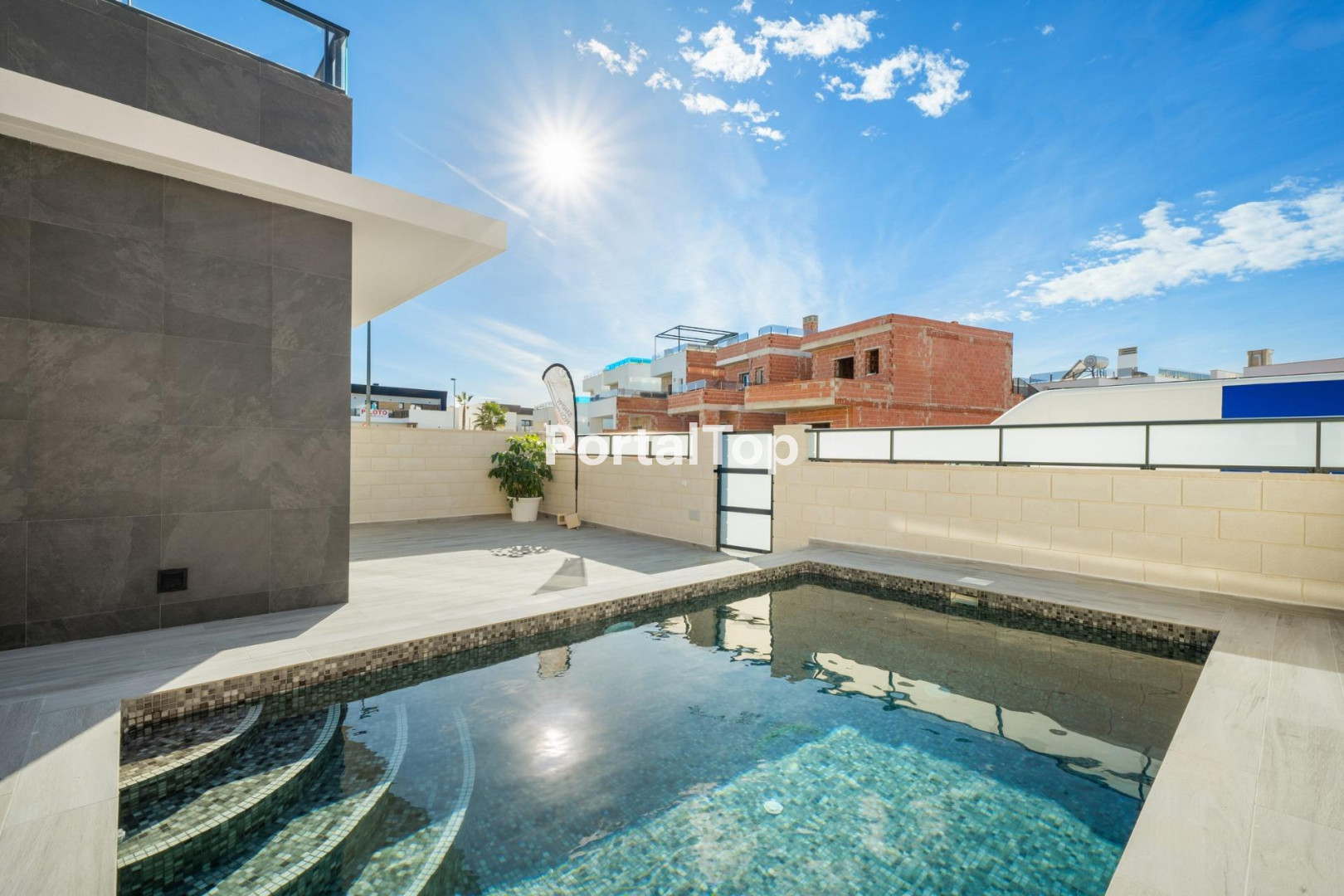PAREADO DE OBRA NUEVA EN BENIJÓFAR CON PISCINA PRIVADA. . Pareado con 3 dormitorios, 3 cuartos de baños, cocina abierta al salon-comedor, parcela de 192 m2 con piscina privada y terraza en planta primera de 16 m2 con vistas despejadas. Posibilidad de habilitar un solárium privado de 46 m2 con un coste extra. . . Benijófar se encuentra en el margen derecho del río Segura, está bien comunicado con Orihuela y Guardamar del Segura por la carretera que te conducirá a sus estupendas playas de arena fina, a menos de 8km de distancia. Hay varios campos de golf en los alrededores (a menos de 4 km). También está comunicado mediante una carretera comarcal con Torrevieja. A 42 km. de Alicante y a 85 km. de Benidorm.. . NEW CONSTRUCTION SEMI-DETACHED HOUSE IN BENIJÓFAR WITH PRIVATE POOL . . Semi-detached house with 3 bedrooms, 3 bathrooms, kitchen open to the living-dining room, 192 m2 plot with private pool and 16 m2 first floor terrace with unobstructed views. . . Possibility of enabling a private solarium of 46 m2 at an extra cost. Benijófar is located on the right bank of the Segura River, it is well connected to Orihuela and Guardamar del Segura by the road that will take you to its wonderful fine sand beaches, less than 8km away. . . There are several golf courses in the surrounding area (within 4 km). It is also connected by a regional road to Torrevieja. 42 km. from Alicante and 85 km. from Benidorm.