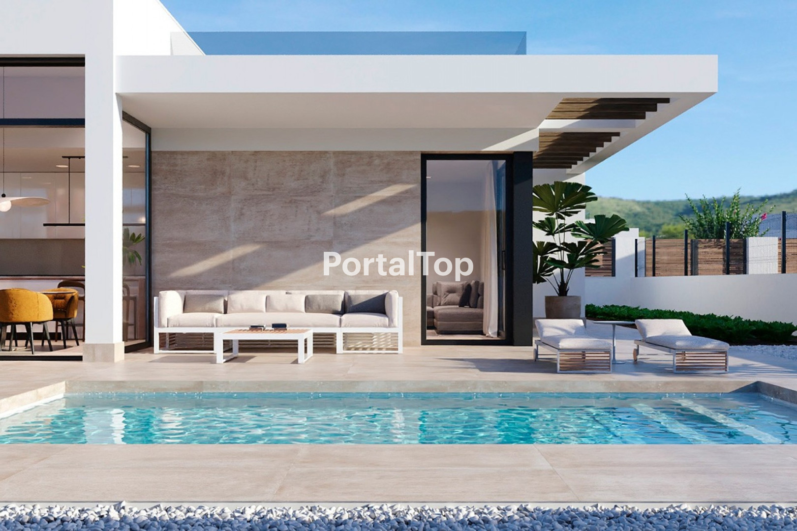 Costa Blanca Eiendom presenta un exclusivo desarrollo de 15 villas de lujo diseñadas para ofrecer el máximo confort en un entorno natural privilegiado. Estas impresionantes villas de una sola planta, con un diseño arquitectónico moderno y elegante, cuentan con 3 amplios dormitorios y 2 baños, combinando sofisticación, funcionalidad y privacidad. Cada villa se asienta sobre una generosa parcela de 555 m2, ofreciendo un equilibrio perfecto entre amplitud y exclusividad. El espacioso salón de concepto abierto, con una cocina de diseño contemporáneo completamente equipada, se conecta de manera fluida con el exterior gracias a grandes ventanales correderos. Desde aquí, se accede a un jardín privado con una espectacular piscina, creando un espacio ideal para el relax y el entretenimiento. Los dormitorios han sido concebidos para maximizar la comodidad, destacando el dormitorio principal con vistas a la piscina y acceso directo a la terraza. Además, la villa dispone de un solárium en la azotea con vistas panorámicas a la naturaleza y las montañas circundantes, proporcionando un refugio privado para disfrutar del sol y la tranquilidad. Las villas han sido diseñadas con materiales de primera calidad y cuentan con una memoria de calidades excepcional: Estructura y cimentación: Hormigón armado de alta resistencia.Fachada: Acabado en mortero monocapa, gres porcelánico y piedra natural.Cubierta: Impermeabilizada con aislamiento térmico y solárium transitable.Pavimentos interiores: Gres porcelánico de gran formato.Carpintería exterior: Aluminio con rotura de puente térmico y doble acristalamiento.Puerta principal: Blindada con cerradura de seguridad.Cocina: Mobiliario de diseño con encimera de alta calidad y electrodomésticos integrados.Baños: Equipados con sanitarios de diseño moderno y grifería de alta eficiencia.Climatización: Preinstalación de aire acondicionado por conductos.Eficiencia energética: Sistema de aerotermia para agua caliente.Piscina privada: Con sistema de depuración avanzado.Jardinería: Espacios verdes diseñados con vegetación autóctona.Vallado perimetral: Muro de piedra y elementos vegetales para mayor privacidad.Aparcamiento: Plaza privada dentro de la parcela. Ubicadas en una prestigiosa comunidad cerrada, estas villas se encuentran a tan solo 4 km del centro de Fuente de Álamo, donde se pueden encontrar una amplia variedad de restaurantes, bares y supermercados. Además, las playas de Mazarrón y La Azohía, famosas por su belleza natural y aguas cristalinas, están a solo 25 minutos en coche. Este exclusivo desarrollo representa una oportunidad única para quienes buscan una residencia moderna en un entorno natural excepcional, combinando lujo, confort y la serenidad del Mediterráneo. Póngase en contacto con nosotros para obtener más información o únase a uno de nuestros tours sin compromiso para descubrir este extraordinario proyecto.