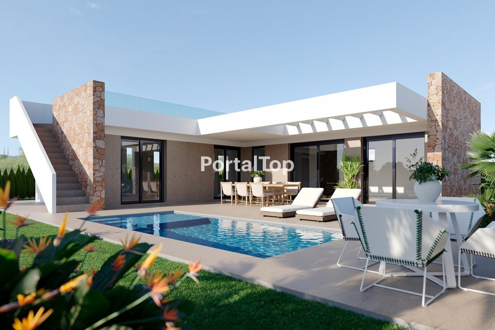 Costa Blanca Eiendom presenta un exclusivo desarrollo de 15 villas de lujo diseñadas para ofrecer el máximo confort en un entorno natural privilegiado. Estas impresionantes villas de una sola planta, con un diseño arquitectónico moderno y elegante, cuentan con 3 amplios dormitorios y 2 baños, combinando sofisticación, funcionalidad y privacidad. Cada villa se asienta sobre una generosa parcela de 555 m2, ofreciendo un equilibrio perfecto entre amplitud y exclusividad. El espacioso salón de concepto abierto, con una cocina de diseño contemporáneo completamente equipada, se conecta de manera fluida con el exterior gracias a grandes ventanales correderos. Desde aquí, se accede a un jardín privado con una espectacular piscina, creando un espacio ideal para el relax y el entretenimiento. Los dormitorios han sido concebidos para maximizar la comodidad, destacando el dormitorio principal con vistas a la piscina y acceso directo a la terraza. Además, la villa dispone de un solárium en la azotea con vistas panorámicas a la naturaleza y las montañas circundantes, proporcionando un refugio privado para disfrutar del sol y la tranquilidad. Las villas han sido diseñadas con materiales de primera calidad y cuentan con una memoria de calidades excepcional: Estructura y cimentación: Hormigón armado de alta resistencia.Fachada: Acabado en mortero monocapa, gres porcelánico y piedra natural.Cubierta: Impermeabilizada con aislamiento térmico y solárium transitable.Pavimentos interiores: Gres porcelánico de gran formato.Carpintería exterior: Aluminio con rotura de puente térmico y doble acristalamiento.Puerta principal: Blindada con cerradura de seguridad.Cocina: Mobiliario de diseño con encimera de alta calidad y electrodomésticos integrados.Baños: Equipados con sanitarios de diseño moderno y grifería de alta eficiencia.Climatización: Preinstalación de aire acondicionado por conductos.Eficiencia energética: Sistema de aerotermia para agua caliente.Piscina privada: Con sistema de depuración avanzado.Jardinería: Espacios verdes diseñados con vegetación autóctona.Vallado perimetral: Muro de piedra y elementos vegetales para mayor privacidad.Aparcamiento: Plaza privada dentro de la parcela. Ubicadas en una prestigiosa comunidad cerrada, estas villas se encuentran a tan solo 4 km del centro de Fuente de Álamo, donde se pueden encontrar una amplia variedad de restaurantes, bares y supermercados. Además, las playas de Mazarrón y La Azohía, famosas por su belleza natural y aguas cristalinas, están a solo 25 minutos en coche. Este exclusivo desarrollo representa una oportunidad única para quienes buscan una residencia moderna en un entorno natural excepcional, combinando lujo, confort y la serenidad del Mediterráneo. Póngase en contacto con nosotros para obtener más información o únase a uno de nuestros tours sin compromiso para descubrir este extraordinario proyecto.