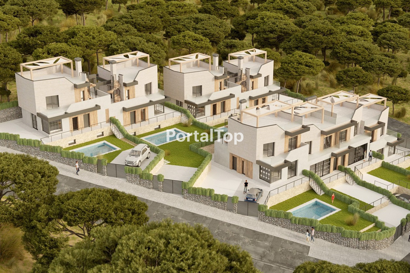 Costa Blanca Eiendom presenta un nuevo complejo residencial que destaca por su diseño moderno, distribución eficiente y ubicación privilegiada. Este exclusivo conjunto, compuesto por 8 villas pareadas, ha sido concebido para ofrecer el máximo confort, amplitud y privacidad, integrando de forma armónica los espacios interiores y exteriores. Las viviendas se distribuyen en dos plantas y cuentan con 3 dormitorios dobles con armarios empotrados y 2 baños completos. El amplio salón-comedor se integra con una cocina abierta totalmente equipada con electrodomésticos de alta gama. Los interiores han sido diseñados para aprovechar al máximo la luz natural, creando una atmósfera cálida y funcional en cada estancia. Las parcelas, que alcanzan hasta los 412 m2, están completamente valladas e incluyen una zona de aparcamiento privada. Cada villa dispone de una piscina privada de 3,5 x 6 metros, ideal para disfrutar del clima mediterráneo todo el año. Además, un amplio solárium en la azotea ofrece vistas despejadas a las montañas y constituye un espacio exterior ideal para relajarse. Algunas tipologías incluyen un semisótano de 77 m2 con luz natural, un espacio versátil que puede adaptarse como sala de ocio, dormitorios adicionales o segundo salón, según las necesidades del propietario. Entre los acabados más destacados se incluyen: preinstalación de aire acondicionado por conductos (frío/calor), suelo radiante, persianas motorizadas, doble acristalamiento, puerta de entrada de seguridad, paredes lisas y materiales de alta calidad en toda la vivienda. El residencial se encuentra en Pilar de la Horadada, una tranquila zona residencial con todos los servicios esenciales a poca distancia. Esta localidad ofrece una excelente calidad de vida gracias a su cercanía al mar, zonas verdes, colegios, instalaciones deportivas y campos de golf. Su ubicación estratégica permite además un acceso rápido a las playas del Mediterráneo y a los principales núcleos urbanos de la Costa Blanca. Memoria de calidades: Cimentación combinada con estructura metálica y de hormigón conforme al CTE. Fachadas con acabado monocapa, revestimiento cerámico imitación madera e aislamiento térmico. Cerramientos exteriores en termoarcilla y tabiques interiores en yeso laminado con aislamiento de lana mineral. Revestimientos interiores con gres cerámico en baños y pintura lisa en paredes y techos. Carpintería exterior en PVC gris antracita con doble acristalamiento y persianas motorizadas. Cocina Porcelanosa completamente equipada con encimera de Silestone y electrodomésticos incluidos. Baños con sanitarios de porcelana vitrificada, mamparas de ducha, espejos y grifería termostática. Climatización mediante preinstalación de aire por conductos y calefacción por suelo radiante. Agua caliente sanitaria mediante bomba de calor aerotérmica. Instalación eléctrica completa con red de telecomunicaciones. Piscina privada de 6 x 3,5 metros con zona de playa poco profunda. Este proyecto es ideal para quienes buscan una vivienda moderna y confortable con prestaciones de alto nivel, ya sea como residencia principal, segunda vivienda o inversión en una de las zonas con mayor proyección de la Costa Blanca. Póngase en contacto con nosotros para más información o para concertar una visita sin compromiso a esta exclusiva promoción.