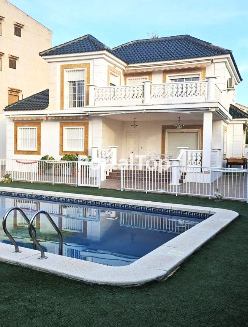 Gran chalet de 204 m2 construidos, distribuido en dos plantas, en parcela de 600 m2. Recientemente reformado y mejorado con materiales de primera calidad. A sólo 400 metros de la playa. Dispone de 6 amplias y luminosas habitaciones, 3 en cada planta. 4 baños, 2 por planta. Porche, salón - comedor a dos alturas, cocina independiente equipada, lavadero, despensa, terraza y balcón. Zona de barbacoa y trastero. Con piscina privada de 45 m2, vallada y jardín. Garaje para dos coches y zona de aparcamiento no cubierta con capacidad para tres coches. Totalmente amueblado y con electrodomésticos. Para entrar a vivir. Se informa al cliente que los gastos notariales, registrales, impuestos y otros gastos inherentes a la compraventa no están incluidos en el precio.