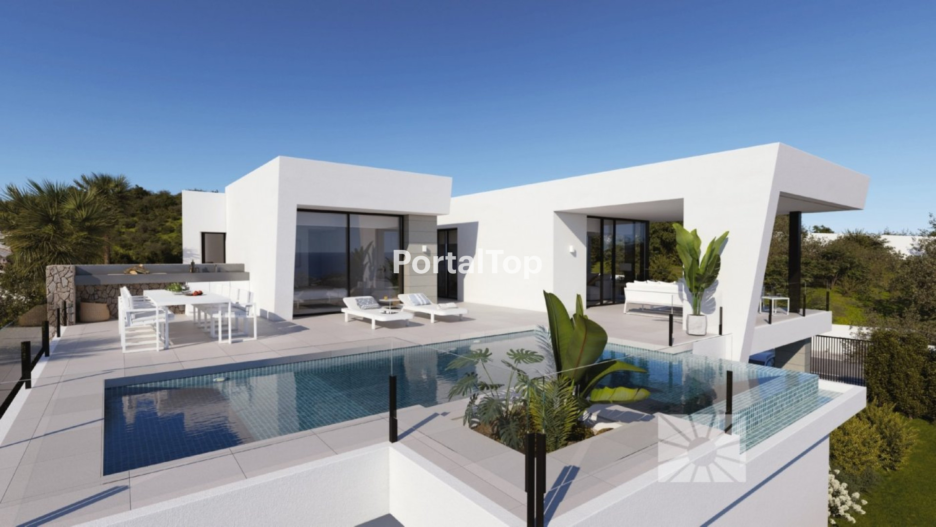 Moderna villa de diseño en venta en Cumbres del Sol Un proyecto único para una de las últimas parcelas disponibles en esta parte de la urbanización, una zona consolidada en el residencial Resort Cumbre del Sol, diseñado para sacar el máximo partido a las vistas al mar. Su ubicación destaca, principalmente, porque permite caminar hasta el centro comercial “Adelfas”, donde se pueden encontrar servicios y oferta gastronómica y la zona deportiva de Cumbre del Sol. Es un lugar ideal si quieres hacer deporte, salir a comer o simplemente dar un paseo. Un proyecto especial para quienes buscan una propiedad con un diseño único. Una distribución práctica con soluciones inteligentes que consiguen aprovechar al máximo el espacio. La villa tiene 3 dormitorios, el dormitorio principal tiene vestidor y baño en suite, los otros dos dormitorios tienen baño compartido y acceso a la terraza. Hay una cocina abierta al salón-comedor separada por una isla, un amplio porche donde poder disfrutar de largas conversaciones después de la cena, áreas ajardinadas alrededor de las terrazas, una piscina infinita, y muchos más detalles que hacen de esta propiedad un lugar único.