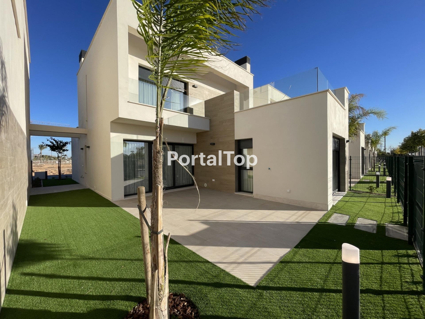 VILLAS DE OBRA NUEVA EN RESORT PRIVADO EN PROVINCIA DE MURCIA Villas de nueva construcción de diseño moderno, contemporáneo y sostenible, construidas con un alto estándar de calidad y comodidad. Esta promocion de nueva construcción consta de 15 villas en varios tamaños de parcela que van desde 210m2 a 356m2. Todas las villas tienen la misma área construida y distribución que consta de una entrada y comedor de doble altura, un área de sala de estar y cocina de planta abierta, 2 dormitorios y 2 baños en la planta baja. En la planta superior se encuentra el dormitorio principal con baño en suite y vestidor, además de 2 terrazas. En la parcela hay plaza de aparcamiento y jardín en la parte trasera, trastero en el lateral, porche y jardín delantero. Dotado de las últimas tecnologías y materiales de alta calidad, para dotar a estas propiedades de un Certificado de Eficiencia Energética Clase A. Como las propiedades se venden sobre plano, hay varias opciones de personalización disponibles para seleccionar la combinación de materiales de su elección. ¡Al finalizar, habrá instalado todo lo que seleccionó! Resort privado, vallado, con puertas de acceso y seguridad 24 horas. El resort está diseñado en torno a una impresionante zona verde de 126.000 m². En la zona central hay rutas y caminos para andar, carriles bici, instalaciones deportivas, calistenia, pistas de pádel y tenis, un campo de minigolf, jardines y zonas de ocio, parques caninos, casa club… Y la joya del resort, que se encuentra también dentro de la zona central, se trata de una laguna de aguas cristalinas con una lámina de agua de casi 17.000 m², rodeada de playas de arena blanca y palmeras, acercando un pedacito de las playas del caribe a Murcia. Dentro del lago hay 2 islas, una de ellas cuenta con bar, también hay distintos chiringuitos de playa repartidos en distintas zonas. El resort se encuentra estratégicamente situado a menos de 4 km de la playa y de la población de Los Alcázares, donde se pueden realizar diversos deportes náuticos, rodeado de varios campos de golf y la ciudad de Cartagena a menos de 15 minutos en coche y a 22 km del aeropuerto de Murcia, teniendo por tanto una amplia oferta cultural, gastronómica y deportiva al alcance. RDS&#@fdg34