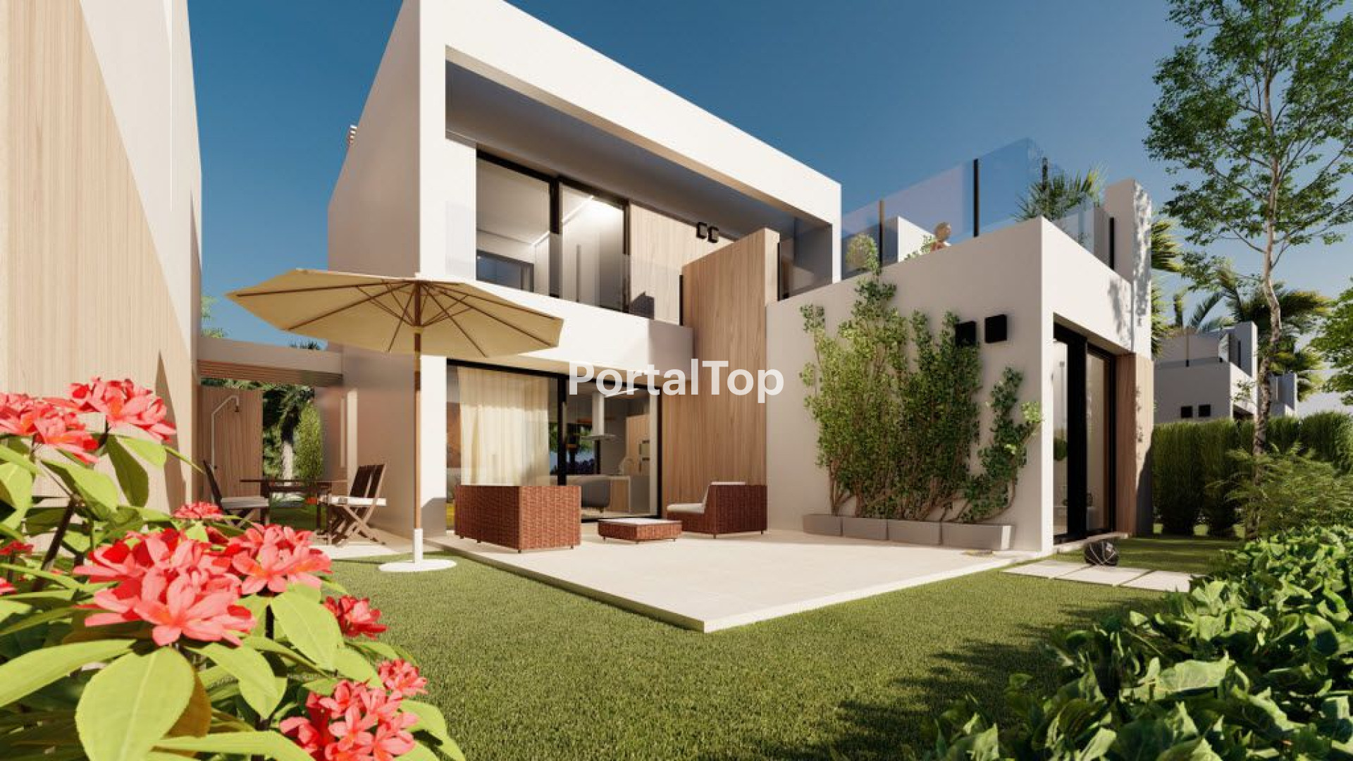 Las villas Sakura Zen han sido diseñadas con estándares de construcción sostenible para obtener una alta eficiencia energética, por ello las villas Sakura Zen han obtenido el Certificado de Eficiencia Energética A.Un diseño vanguardista y funcional que permite disfrutar al máximo de los espacios interiores y exteriores.La doble orientación de la villa Zen Sakura junto con su diseño funcional, permite que los espacios interior y exterior se fusionen a la perfección, conectándolos a través de grandes ventanales correderos, como un único espacio para aprovecharlo al máximo.El jardín se entrega completamente terminado, con plantas y césped artificial, para reducir costes de mantenimiento y consumo de agua.Las fachadas se han diseñado para conseguir una imagen atractiva y actual combinando materiales como el mortero monocapa con gres porcelánico imitación madera de la serie Forest Cognac de Porcelanosa.Los acabados combinan las prestaciones térmicas con el diseño más vanguardista, adaptándose a las necesidades del siglo XXI.Las villas disponen de preinstalación para cargadores de vehículos eléctricos.Amplios dormitorios con baños en suite.El dormitorio principal con vestidor y baño, también dispone de dos amplias terrazas a ambos lados, con una terraza íntima y privada para su disfrute más la gran terraza principal orientada al sur, a la que se puede acceder sin entrar en el dormitorio principal. Todos los dormitorios disponen de persianas de aluminio termoacústicas automatizadas. Contribuyendo a la insonorización y eficiencia energética de las villas.La villa Zen Sakura aprovecha sus 122m2 construidos para generar una mayor sensación de amplitud.Las parcelas de las villas van desde los 210m2 hasta los 356 m2.Pavimento exterior Botega Caliza antideslizante.El acceso para la entrada y salida de vehículos por la vía privada es de uso exclusivo de vecinos, se accede a través de una puerta automática, con dispositivo de seguridad antiaplastamiento y mando a distancia. También habrá acceso peatonal.Distancias:* Aeropuerto de Alicante 81km (1 hora)* Aeropuerto de Murcia 31km (25 min)* Cartagena 22km ( 16mins)* Murcia 48km (35mins)* Alicante 88km (1h,15min)Más información, contáctenos