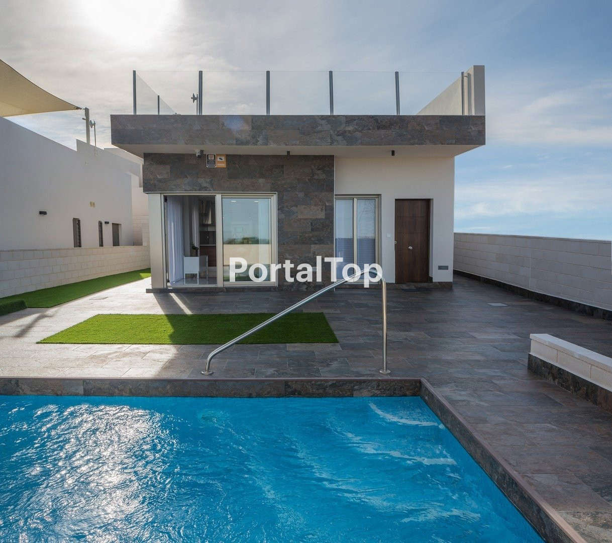 VILLA CONTEMPORANEA JUNTO A CAMPO DE GOLF Villa contemporáneas ubicada junto al exclusivo campo de golf de Villamartín, orientada al Sureste. Consta de 3 dormitorios dobles (todos con armarios empotrados), 3 baños (uno en suite) , cocina integrada moderna totalmente equipada (con barra de desayuno), amplio salón / comedor abierto que conduce a un jardín cerrado con piscina privada y zona de parking, y un amplio solarium en la azotea. Sótano en bruto incluido en el precio. El sótano se puede terminar por un coste adicional. Cerca de las encantadoras playas, calas y puertos deportivos de Cabo Roig y Campoamor, cerca de 3 diferentes campos de golf. También los servicios de una gran variedad de bares y restaurantes, entretenimiento en vivo y centros comerciales como La Zenia Boulevard y Los Dolces. Y los beneficios de las buenas conexiones por carretera y Aeropuertos Alicante y Aeropuertos Internacionales de Murcia.