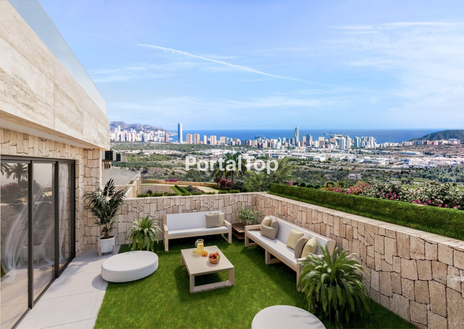 NUEVO COMPLEJO RESIDENCIAL EN FINESTRAT CON VISTAS AL MAR!!! El residencial tiene en su centro un pequeño valle o vaguada y a cada lado de este valle se encuentra un bloque de viviendas. Las viviendas están orientadas al mar y al Sur, con grandes terrazas frontales, espacios que dan vida. En el residencial puedes elegir viviendas en plantas bajas de 3 dormitorios tipo duplex con terraza en planta baja y jardín en planta sótano (donde hay un gran espacio diáfano que se puede habilitar para dormitorios adicionales), plantas primeras de 2 dormitorios con grandes terrazas o plantas ático de 3 dormitorios con grandes terrazas y solárium privados. Todas ellas con maravillosas vistas al mar y al skyline de Benidorm. La estructura aterrazada del complejo hacen que las terrazas escalonen su bajada al valle con grandes muros de piedra ciclópea y de mampostería clásica. De piedra natural. Como hace tres mil años. Y cada plataforma trae su belleza. Las más altas con el agua, las piscinas, el mirador y las zonas de encuentro social. Y la mirada al mar, desde arriba, en su escala justa. Las siguientes terrazas traen vegetación y sendas para pasearlas. Para la meditación, para el paseo y para hablar con la Naturaleza. Para estar y para mirar. Benidorm y sus playas se encuentran a escasos 3 km, con toda la oferta de ocio que puedas desear. Acabados de lujo, amplias estancias y terrazas, zonas comunes amplias y vistas al mar y al skyline de Benidorm harán de este complejo uno de los referentes de la zona.