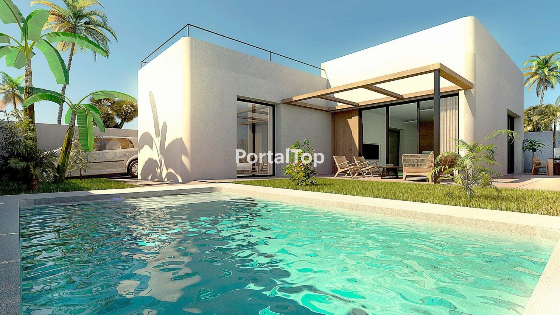 VILLAS DE OBRA NUEVA EN ROJALES Residencial exclusivo de obra nueva con solo 4 villas independientes, situado junto al campo de Golf La Marquesa en Rojales. Las villas se distribuyen en una sola planta principal, con 2 amplios dormitorios, 2 baños, y una cocina integrada en el luminoso salón que da acceso a la zona de jardín y piscina. Los chalets cuentan además con un solarium de 60 metros, acabado con césped artificial y balaustrada de cristal, fabuloso sótano del que disponen las viviendas, de más de 80 metros, que cuenta con lavadero y dos patios ingleses que aportan luz y ventilación natural. Descubre este pueblo tradicionalmente agrícola que se ha convertido en uno de los destinos preferidos del interior de la Vega Baja, gracias a su estratégica ubicación junto a la N-332 y la AP-7. Sus excelentes accesos permiten llegar al aeropuerto de Alicante en 20 minutos y disfrutar de las playas de Guardamar, La Mata o Torrevieja en 15 minutos. Rojales ofrece una rica y variada oferta gastronómica y de ocio, y cuenta con el prestigioso campo de golf de 18 hoyos La Marquesa Golf.