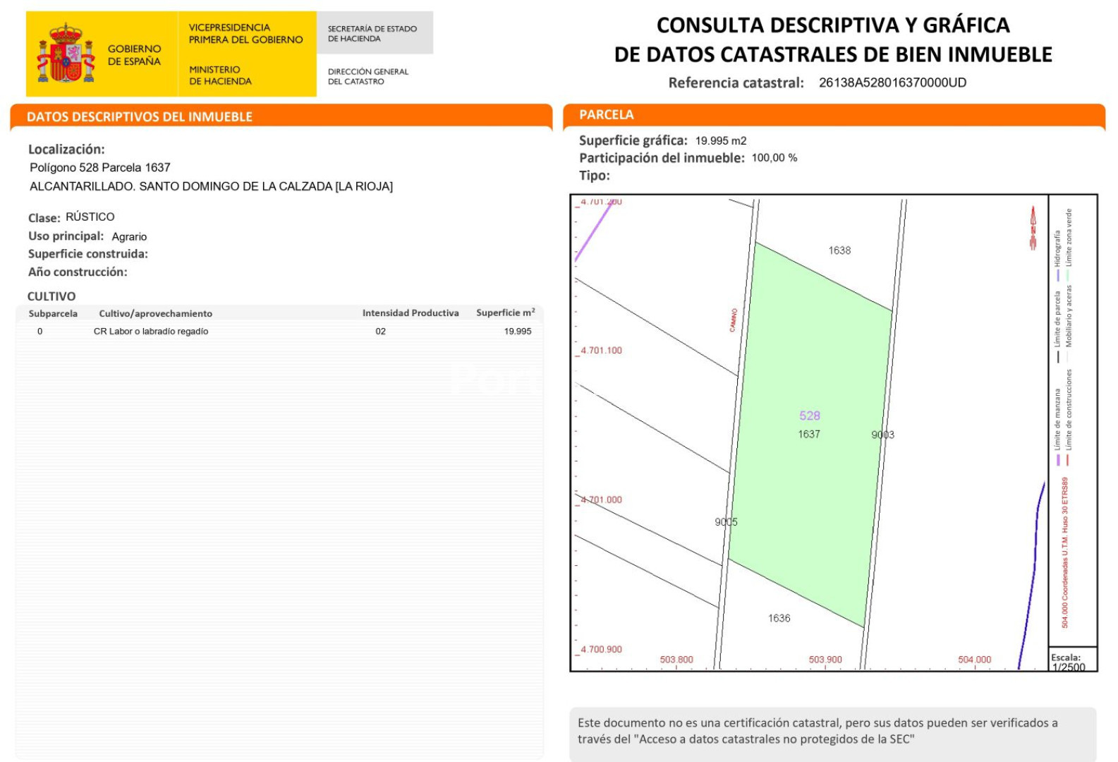 Finca rústica de regadío en polígono 528 parcela 1637 con muy buen acceso desde camino - Alcantarillado