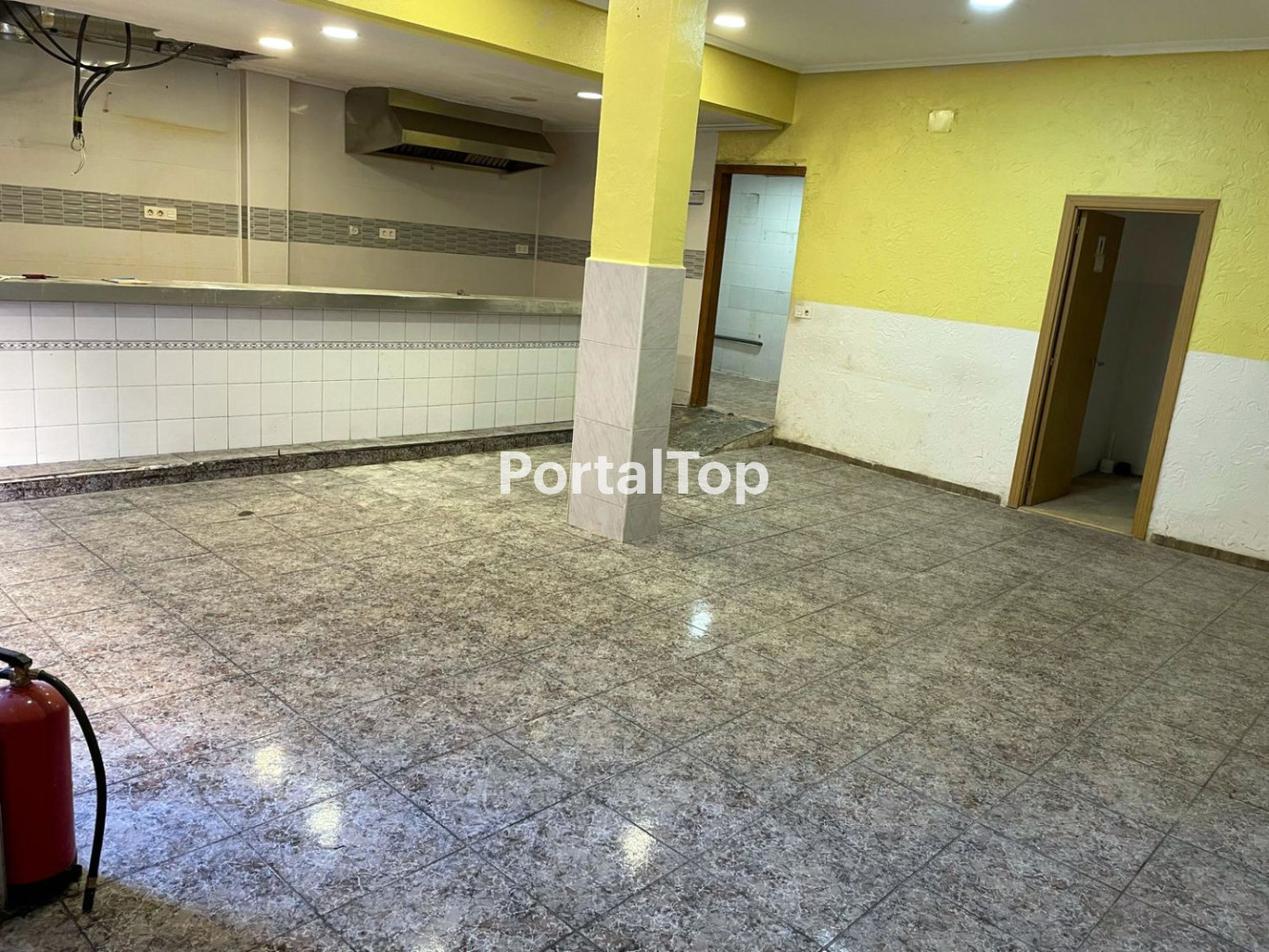 Bajo Comercial en Murcia con puerta de entrada grande y ventana al exterior, completamente diáfano, con dos cuartos de baño y almacén, con salida de humos para poder construir vivienda. Solamente 10 euros/mes de comunidad de propietarios.