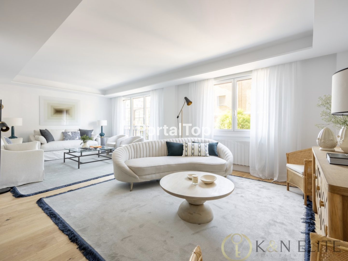 KN ELITE le ofrece este maravilloso piso recién reformado en el prestigioso Barrio de Salamanca, en la Calle Don Ramón de la Cruz, a escasos metros de la Plaza del Marqués de Salamanca. Se trata de un edificio construido en 1994, con amplio portal y servicio de conserjería. La vivienda, ha sido reformada con las mejores calidades y se entregará amueblada. Es una primera planta exterior con 191 m2 construidos (157m2 de vivienda). Tiene un recibidor que da acceso a un magnífico Salón Comedor de 45 m2 distribuido en varios ambientes, con grandes ventanales a la calle. Destaca la gran luminosidad de la vivienda ya que tiene orientación sur. La cocina, abierta al salón, está completamente equipada con una gran isla y con los electrodomésticos panelados en roble de las mejores marcas. Cuenta con tres dormitorios dobles con baño ensuite cada uno de ellos y aseo de cortesía con ducha. Dispone de un cuarto dormitorio individual ó despacho. Habitaciones con amplios frentes de armarios empotrados. Incluye una amplia plaza de garaje de acceso directo. -Aire Acondicionado: Por conductos con sistema AIRZONE Flexa independiente para cada estancia. - Carpinterías de Aluminio con Rotura de Puente Térmico CORTIZO HO-70 con persianas motorizadas. - Suelo de Madera de Roble de estilo rústico pulido de la prestigiosa marca sueca Kährs. - -Electrodomésticos BALAY: Lavadora, Secadora, Horno, Microondas, Frigorífico y Congelador Side by Side, Placa inducción, Campana Extractora, Lavavajillas y Vinoteca. - Iluminación LED de bajo consumo y candilejas con tiras led en el salón comedor. - Conexiones: Red de datos doméstica. Toma de TV E INTERNET en todas las estancias de la vivienda. - Cuartos de baño: En suelos y alicatados Baldosa Porcelánica PORCELANOSA y AZULEJOS PEÑA. Sanitarios ROCA y Griferías TRES.