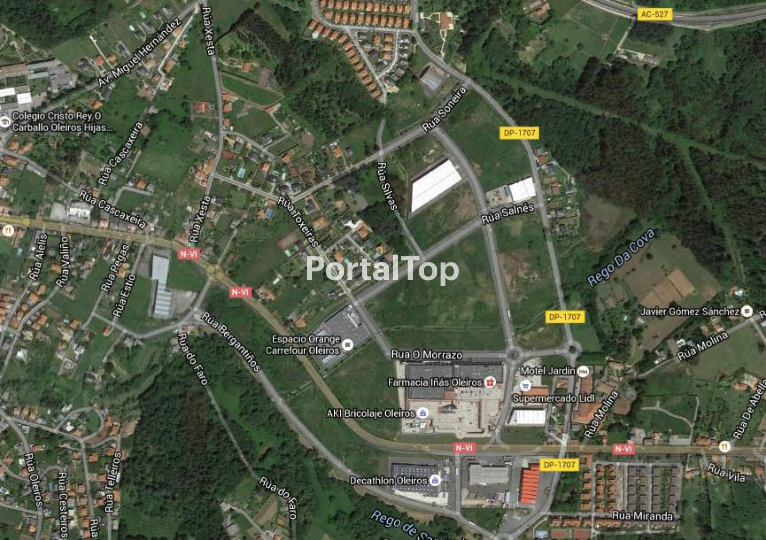 Parcela industrial con una superficie de 2.508 m2, situada en el polígono de Iñás que tiene una superficie total de 396.916 m2, de los que 269.443 son los que ocupan las parcelas. En el parque están las firmas Supercor, Carrefour, Decathlon, Lidl y Jardiland. El acceso es por la Ctra. N-VI y con enlace desde la Vía Ártabra, a 12 Km de Coruña y a 65 Km de Santiago de Compostela. El parque cuenta con limpieza, recogida de basuras, punto limpio, vigilancia y un vivero de empresas gestionado por el ayuntamiento de Oleiros.