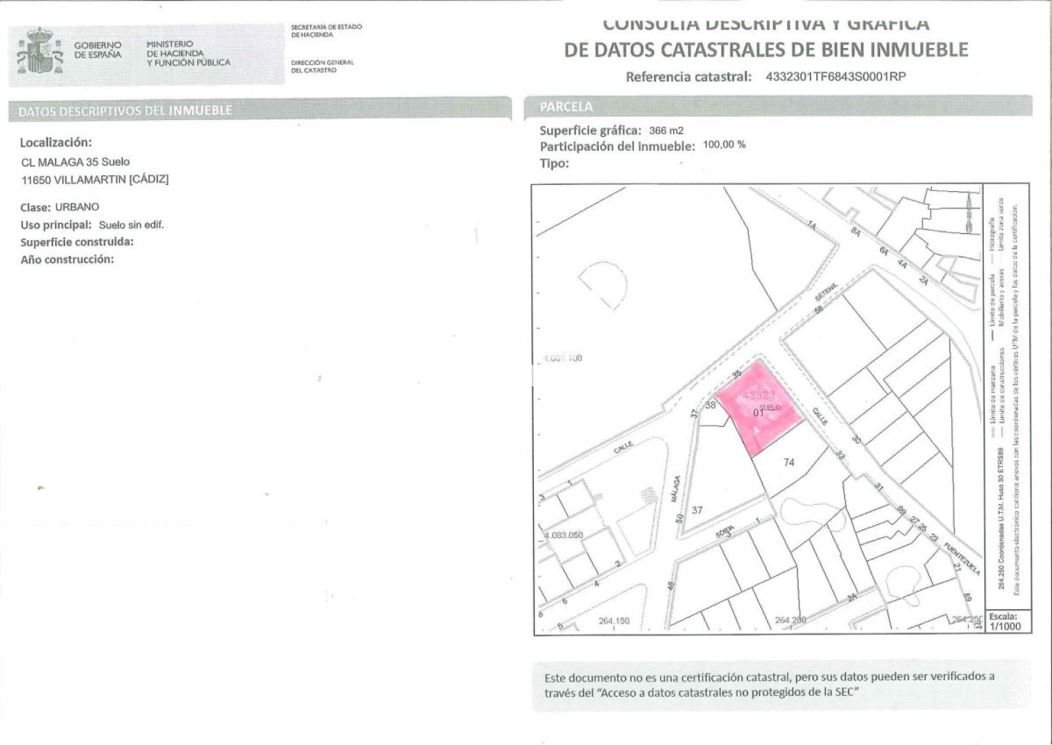 Solar de 366 m2 en Villamartín (Cádiz)