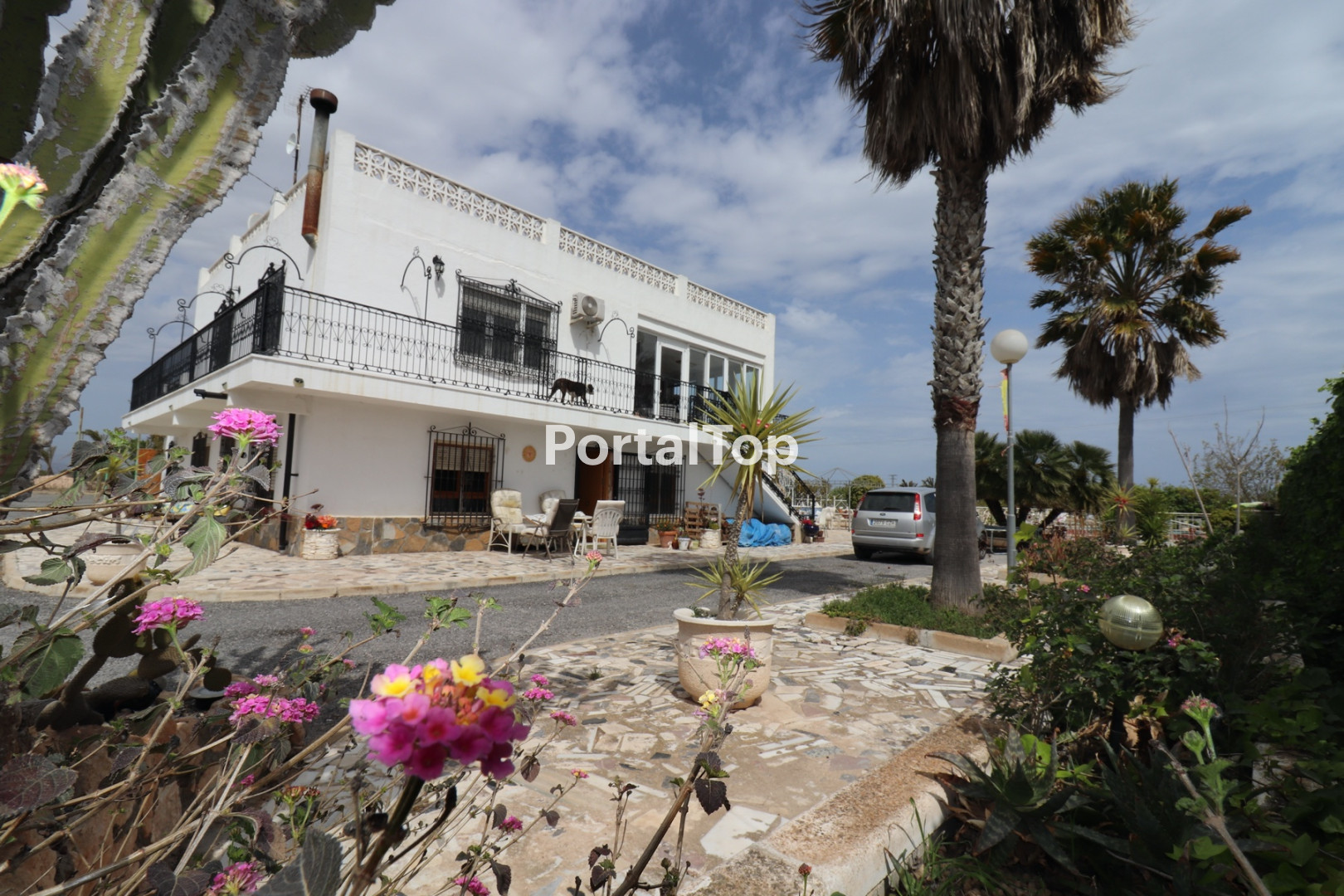 Outside there is pool, a tennis area, an area for a vegetable garden and a carport for several cars.