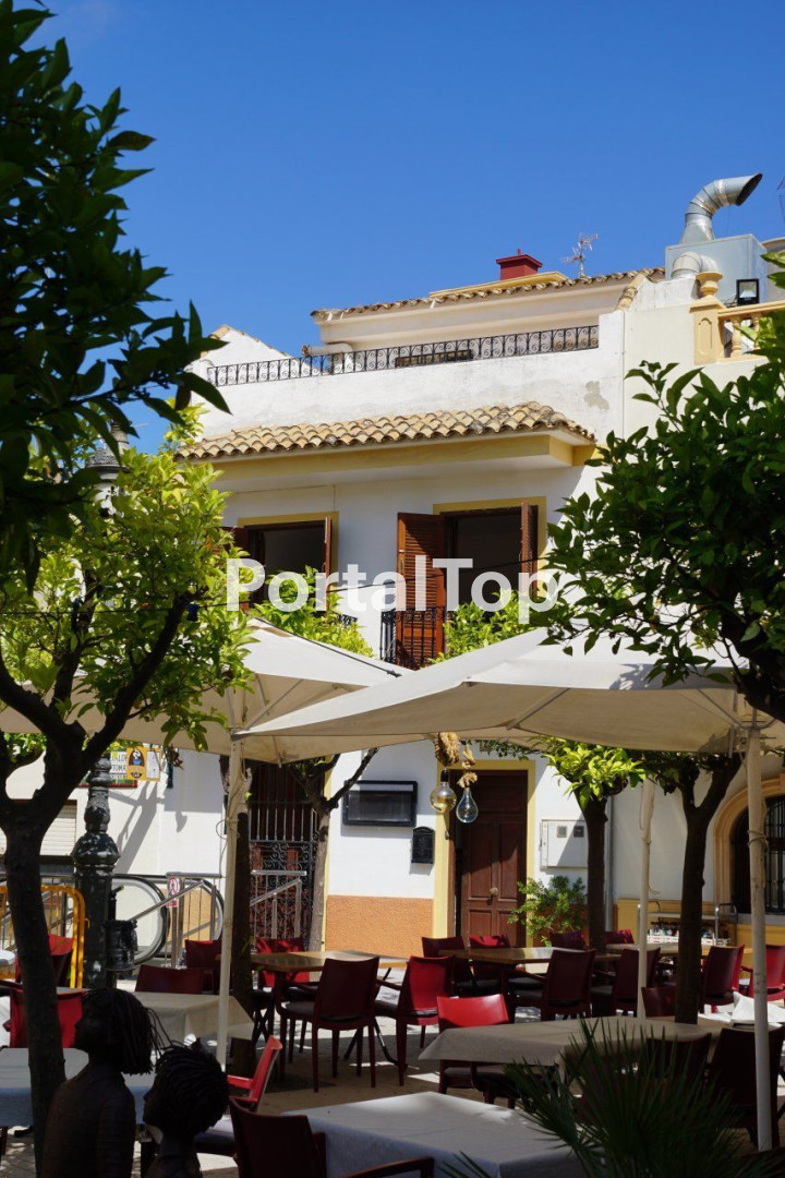 - A large 3 level townhouse with tradition features, tiling and ironwork, superbly located on Calpe's Old Town square. Three terraces overlook the Church, the square with its orange trees and the Mediterranean (semi-covered rear upper floor terrace). The living space of this very attractive property comprises of: Ground floor - an traditional style entrance hall with a Spanish tiled stair with wood bannisters, an office/ reception room, a large bedroom, a bathroom and a large fitted kitchen with breakfast table. First floor - four double bedrooms with the principal bedroom having an en-suite shower and two balconies with wrought iron railings overlooking the square plus a large bathroom. Upper floor - a bedroom, shower room and two terraces, one open west facing overlooking the church and square and a second semi-covered with a summer kitchen and sea views. Altogether a unique property. Town house 258m2[IW]