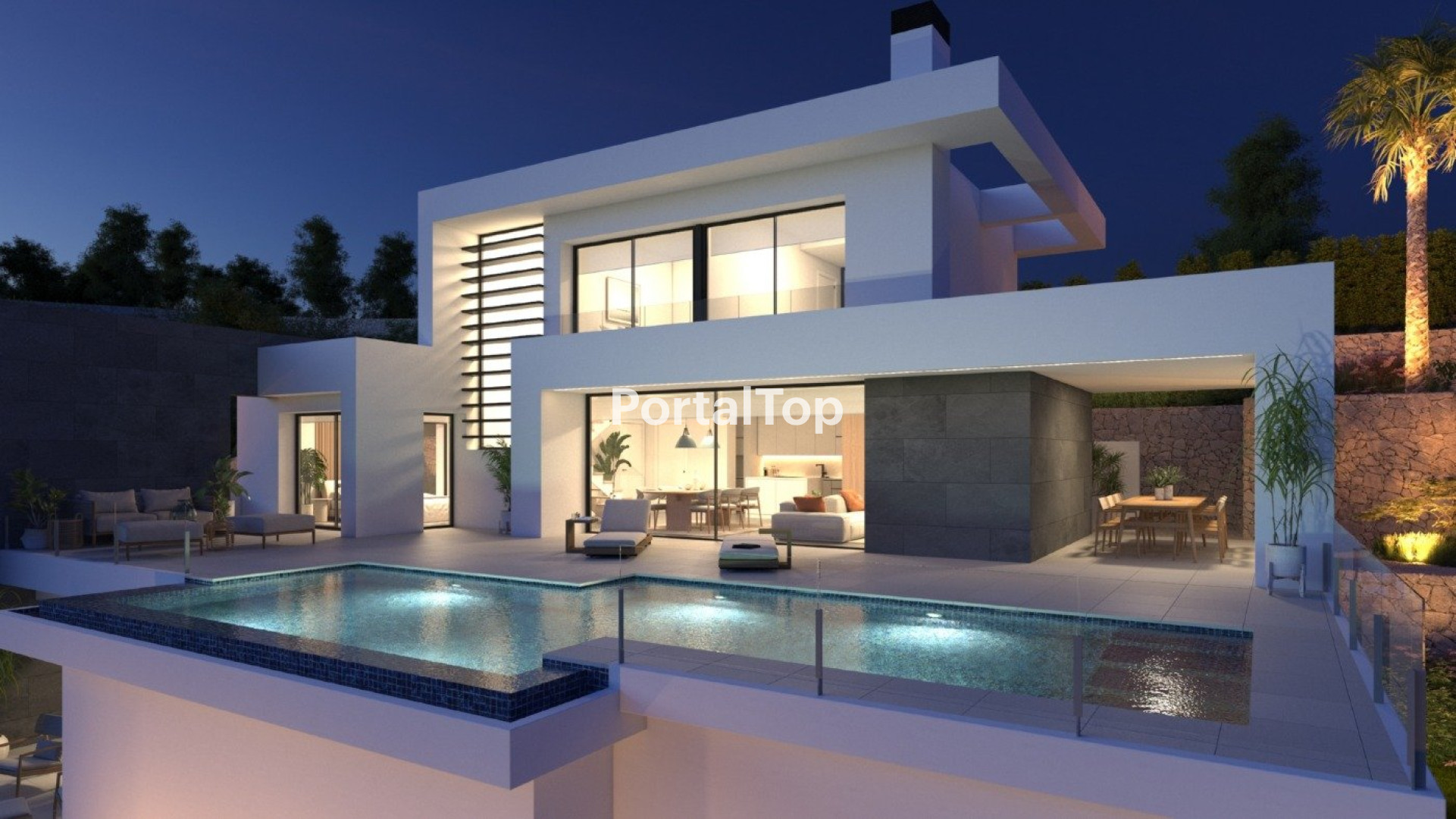 Indulge in luxury with this new-build villa featuring a private pool and captivating sea views in the Residential Resort Cumbre del Sol, situated on the Costa Blanca North between Alicante and Valencia city. This modern and elegant 3-bedroom villa boasts an open and luminous layout, with each bedroom having its own en-suite bathroom. The master bedroom includes a spacious dressing room, and there is potential to extend to 4 bedrooms on the ground floor. The main floor is characterized by open-plaan spaces, seamlessly connecting the kitchen and living-dining room, which open onto the main terrace featuring a stunning private infinity pool and a welcoming porch. The thoughtful design maximizes the panoramic sea views from both the bedrooms and the living-dining room. Privacy is a priority, achieved through a vertical wall that not only offers seclusion to the main terrace but also serves as a distinctive decorative element. This comfortable and sustainable villa is equipped with underfloor heating through aerothermal heating, a fireplace, a self-consumption photovoltaic system installation, pre-installation for electric car charging, and the use of quality materials that provide warmth and sophistication to the house. Cumbre del Sol is an exclusive Residential Resort located at the most easterly point of the province of Alicante, offering breathtaking panoramic views of the Mediterranean Sea and the surrounding natural parks from Jávea to Moraira. Immerse yourself in this first-class resort with exceptional flats and villas, outstanding sports and leisure facilities, and a complete range of services. Benitachell is conveniently located 65 minutes from Alicante airport and 1.5 hours from Valencia airport. Experience the pinnacle of coastal living in this extraordinary setting.