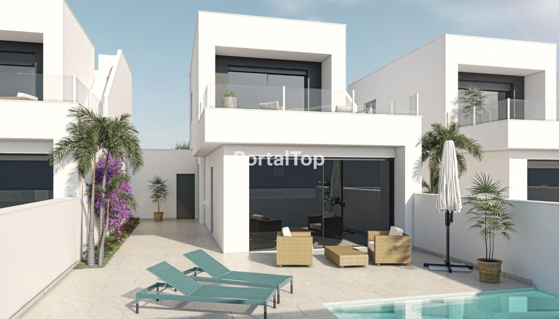 NEW BUILD RESIDENTAL OF SEMI-DETACHED VILLAS IN SAN PEDRO DEL PINATAR These stunning spacious semi-detached villas have been thoughtfully designed to provide the perfect home with spacious ground floor terraces and large-format sliding glass windows to access it. On the ground floor we have open plan salon with kitchen, storeroom and 1 bedroom with 1 bathroom. The first floor we have 2 large bedrooms with a large terrace from the master bedroom and the second bedroom and 1 bathroom. Private garden with off-road parking. Options for a rooftop solarium a private pool with an extra cost. San Pedro del Pinatar's privileged location on the Mar Menor and Mediterranean coastline it attracts those with an interest in sailing and watersports, providing marina mooring and sailing clubs, while the beaches and natural mud baths attract those seeking safe sun, sea and sand. San Pedro del Pinatar has an established community and offers an excellent range of activities, including covered swimming pool and sports facilities, as well as a year round programme of social activitiesby the pleasant winter weather. The benefits of the mud baths, typical of the region, or the calm waters of the Mar Menor, have favored the growth of Lo Pagán, wich currently has all kind of amenities. In addition, it has an excellent location, just 5 minutes from the Comercial Center Dos Mares.