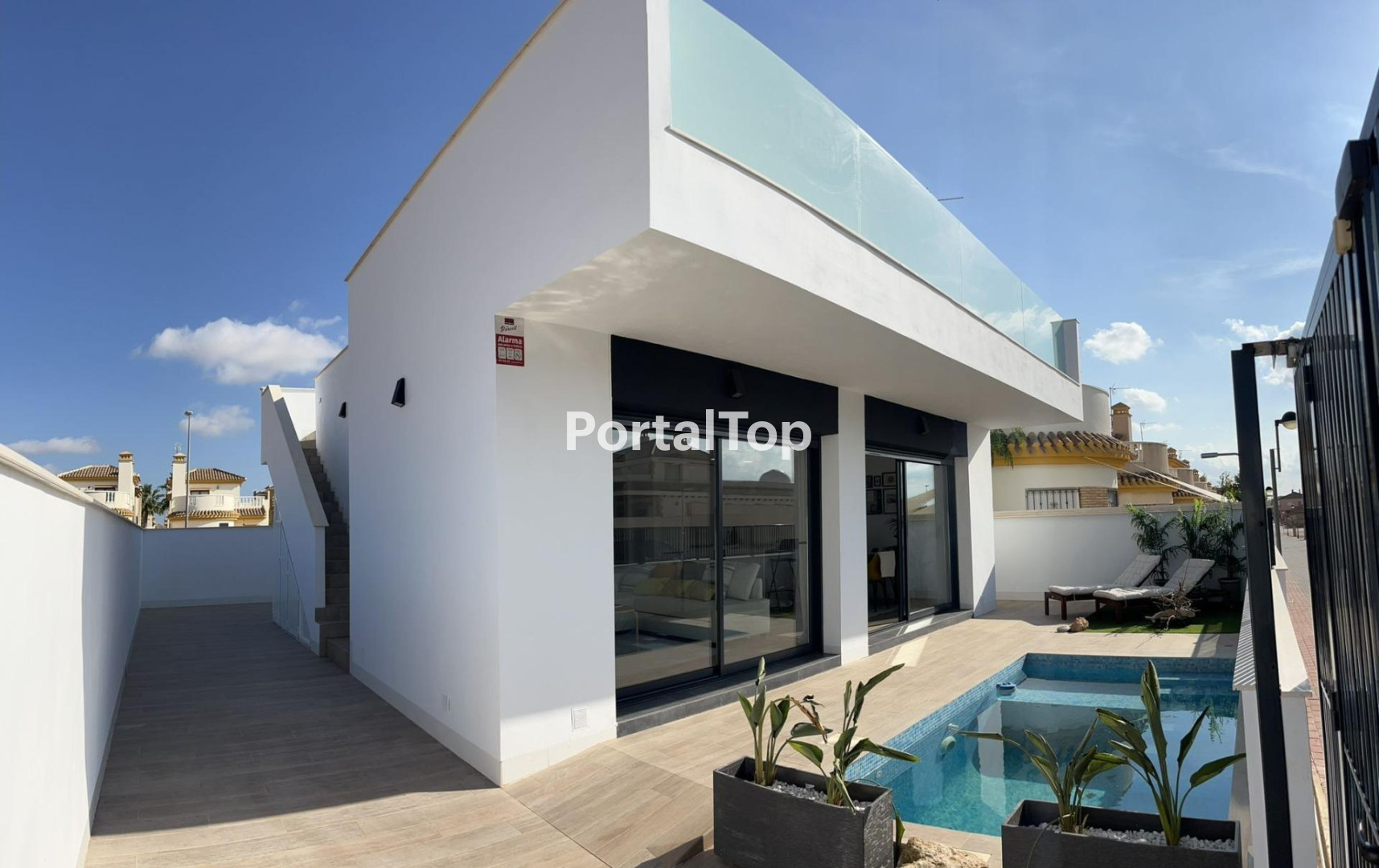 NEW BUILD KEY READY VILLA IN ROLDAN New Build key ready one level villa with an ample solarium and private pool in Roldan.Modern villa has 2 spacious bedrooms, 2 designer bathrooms and a semi-open kitchen that flows into an elegant living room. Private garden with the pool and parking area. Private solarium designed for maximum enjoyment of all hours of sunlight. Villa located proximity to the centre of Roldán, surrounded by premium services, green spaces, and several renowned golf courses within a short distance. Roldan – it’s ideal for the golfers as “Terraza’s de la Torre” and “La Torre Golf Resort” are right on the doorstep. Yoga, Pilates, 2 gyms and “campo football” are all in the town centre. Just 15 minutes from the Mar Menor beaches and 15 minutes from the new International Murcia Airport.