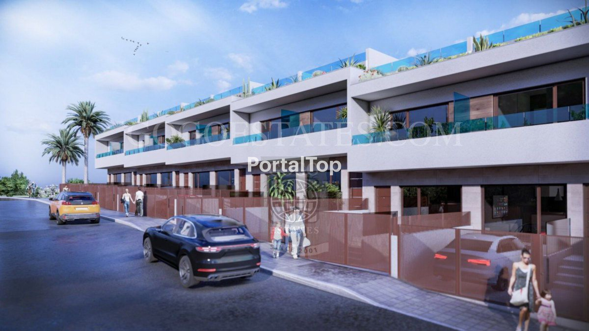 It is a real house to live in.On the ground floor there is a front terrace, a living-dining room, an open kitchen with access to a backyard garden, 1 bedroom with a built-in wardrobe and 1 complete bathroom.The first floor is distributed in 2 large bedrooms with fitted wardrobes, 2 en-suite bathrooms and a front terrace.At the top we find a large solarium overlooking the sea and La Laguna Rosa de Torrevieja, where we can enjoy our most precious asset: the radiant sun that accompanies us most of the year.The Residential offers an extraordinary beach-type swimming pool to enjoy this green setting in a natural environment with access to the bathroom through a progressive beach.The standard qualities and finishes of this new construction are excellent: all homes have automatic blinds in the living room and bedrooms, pre-installation of air conditioning through ducts, a hydromassage column in the main bathroom ...In addition, for a limited time, it is also included as a gift courtesy of the promoter:Indoor and outdoor lightingShower screens in bathroomsKitchen equipment packageThe houses have a very good orientation to the east or west and access to a central green area with a communal pool. Now for sale 1st phase of 10 new duplex townhouses located in the Los Balcones area of ??Torrevieja, with all accessible services (Mercadona supermarket, pharmacy, parks, school, Torrevieja University Hospital ...) and just 5 minutes from the sea.